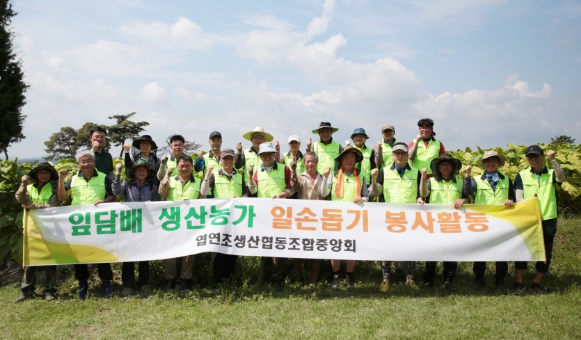 금일 영남조합 관내 예천군에서 중앙회 전무이사를 비롯한 임직원 20여명과 영남조합 임직원이 참여한 가운데 2019년도  잎담배 수확봉사 활동을 실시하였다.