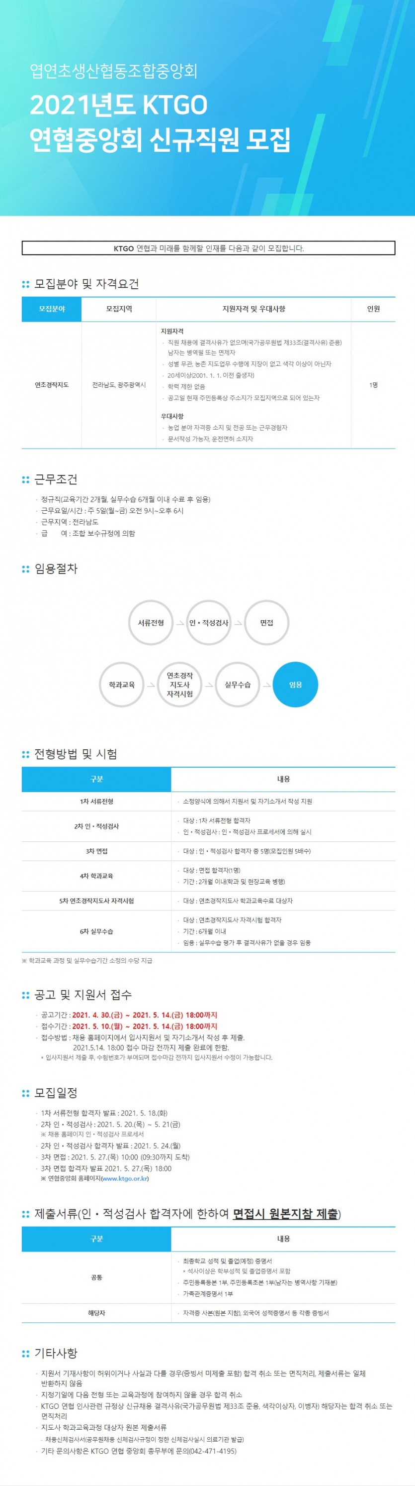 KTGO 연협중앙회 신규직원 모집 > 공지사항