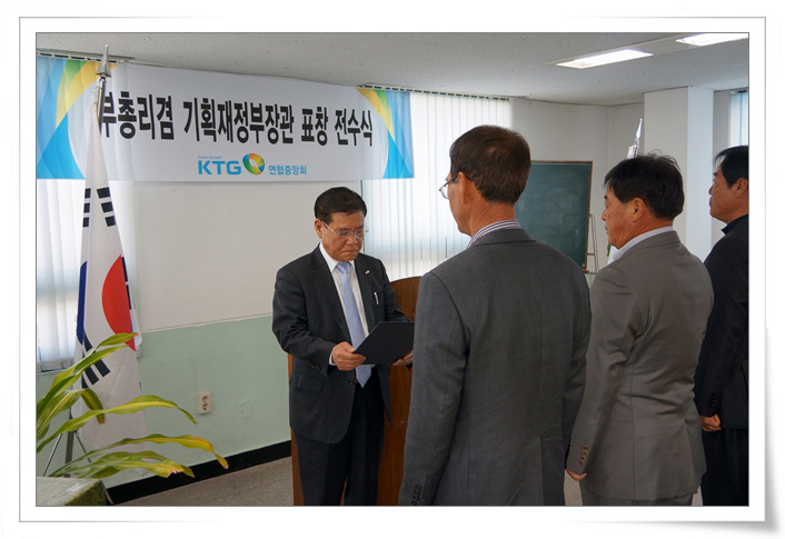 013년도 4월 4일 11:00 KTGO정읍연협 회의실에서 KTGO연협중앙회 이해권 회장은 호남지역 수상자(임․직원 및 조합원)를 대상으로 기획재정부장관 표창전수식을 가졌습니다.