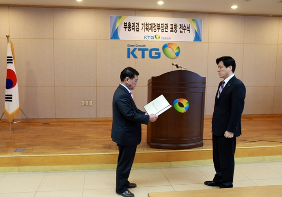 이번 KTGO연협중앙회에서는 서기철 상무이사가 기획재정부장관 표창장을 수여하게 되었습니다. 서기철 상무이사는 잎담배생력증진, 담배사업의 건전한 발전 및 경작농민의 복리증진에 크게 이바지한 공로를 인정받아 부총리겸 기획재정부장관으로부터 표창을 수여하였습니다.