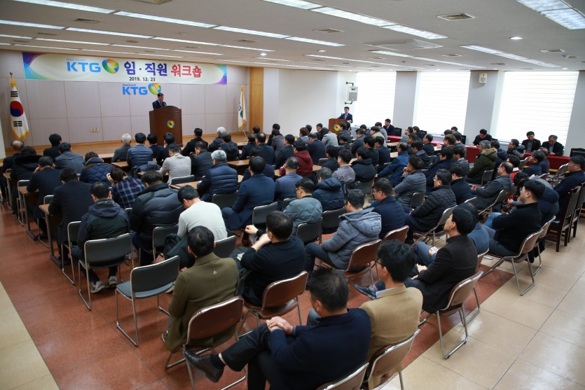 2019년 KTGO 임직원 워크숍 개최 작성일2020-01-09 본문 2019년도 KTGO 임직원 워크숍이 12월 23일 중앙회 대강당에서 개최되었다. 이날 중앙회장은 풍년 농사를 이루는데 열과 성을 다한 임직원에게 감사의 말을 전하였으며, 중앙회 이원식 전무이사는 변혁의 시기에 조직 구성원이 행동뿐 아니라 의식의 전환이 필요하며, 변화에 잘 준비해 나갈 것을 당부하였다. 이전글 다음글 목록