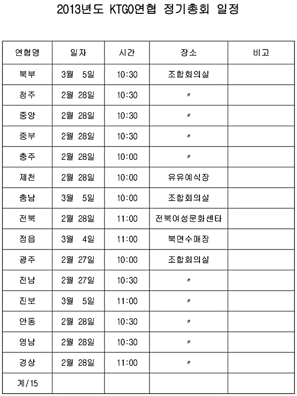 2013년도 KTGO연협 정기총회 일정 공지 > 공지사항