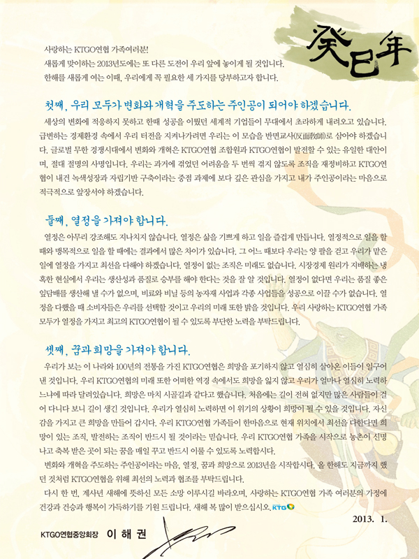 2013년도 KTGO연협중앙회장 신년사 > 공지사항