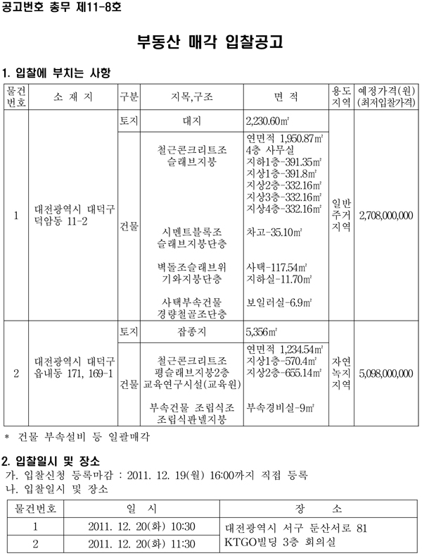 부동산 매각 입찰 공고