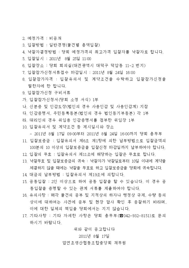 부동산 매각 입찰 공고
